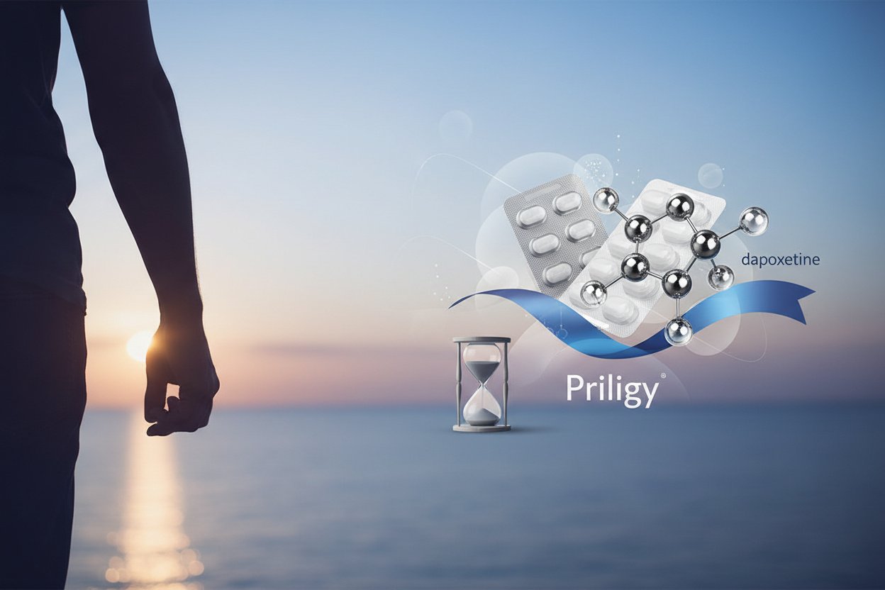 TogglePriligy to jedyny lek zarejestrowany w Europie specjalnie do leczenia przedwczesnego wytrysku u mężczyzn w wieku 18-64 lat. Substancją czynną jest dapoksetyna — krótkodziałający inhibitor wychwytu zwrotnego serotoniny (SSRI), który wydłuża czas do ejakulacji średnio 2-3-krotnie w porównaniu z placebo. W odróżnieniu od sildenafilu czy tadalafilu (które działają na erekcję), dapoksetyna celuje w inny aspekt funkcji seksualnej — kontrolę nad momentem wytrysku. Preparat oryginalny Priligy został opracowany przez firmę Menarini i jest dostępny na receptę w wielu krajach europejskich, choć w Polsce jego dostępność apteczna bywa ograniczona ze względu na cenę i specjalistyczny charakter wskazania.